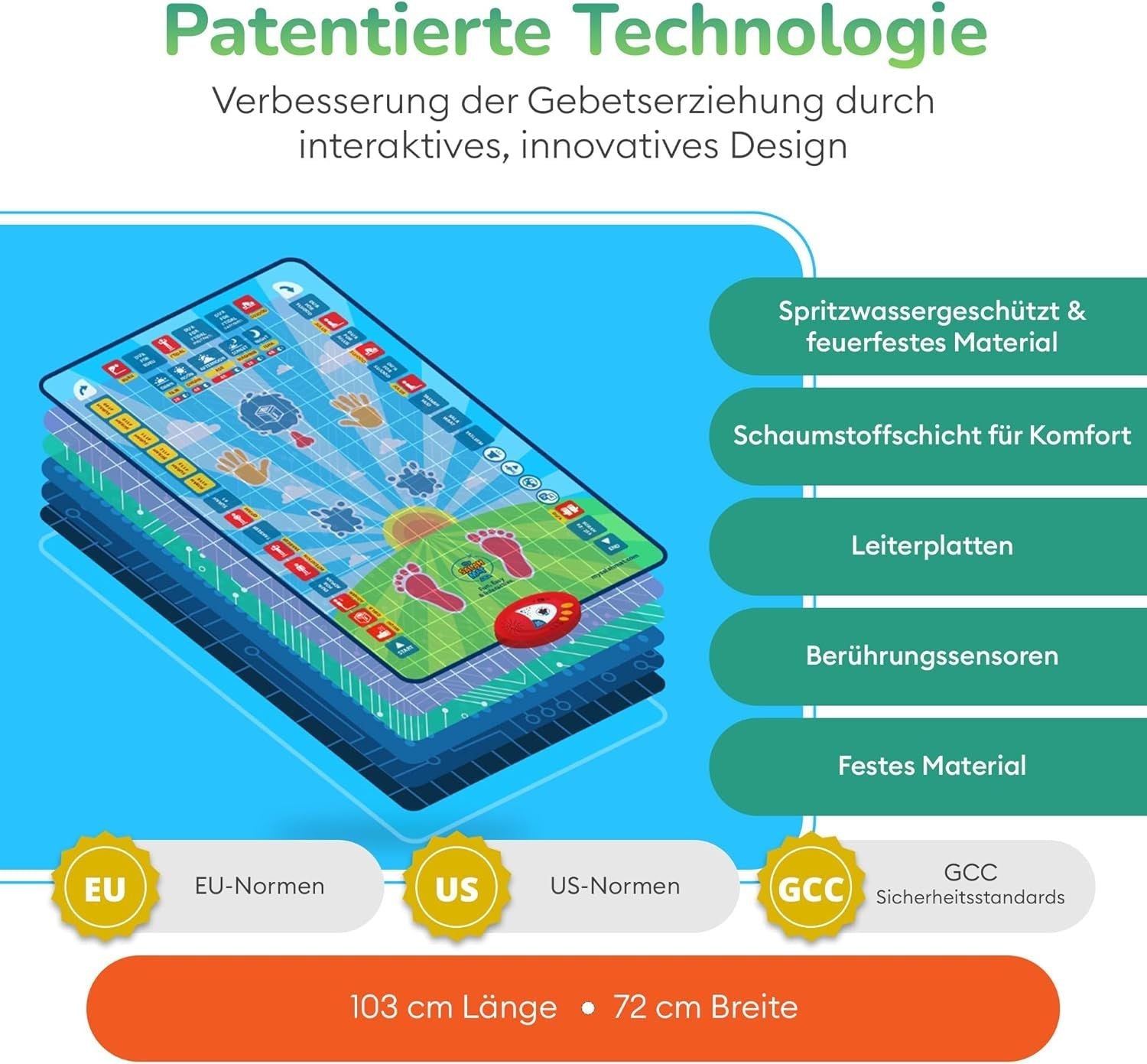 - My Prayer Mat is a new and innovative prayer mat because there are no other Islamic prayer mats available on the market that have been developed specifically to teach children how to perform the prayer in this way. My Prayer Mat includes touch sensor technology which other prayer mats do not have. It takes the prayer mat and completely transforms it into something interactive.